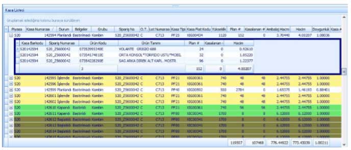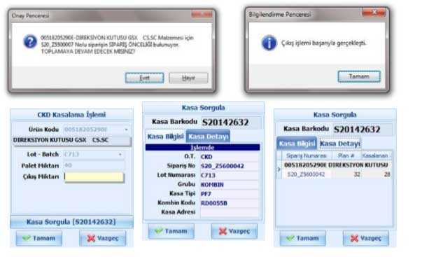 - Bu uygulama ile sistemde kasa içi planı hazırlanmış ancak, ambalajlanmamış kasalar işlem bekleyen yarım kasalar ve sevke hazır kapalı kasaların tamamını kapsamaktadır.
