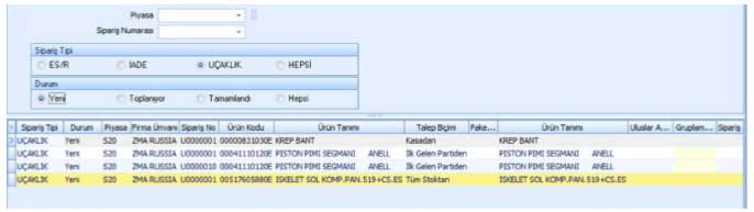 - Sistem parça numarası uçaklık adedi ve yukarıda belirtilen üç statüden herhangi seçilmiş olan gönderim yöntemini kontrol eder.